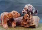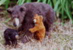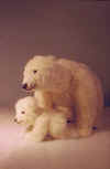 "Who's that?" Die erste Begegnung eines jungen Braunbären mit einem Waschbär erhielt den Toby Award 2001 Industry's Choice . Hela und Soni, die beiden Malayenbären wurden im Oktober 2001 für den japanischen TITA-Award nominiert. Diese Braunbärin mit ihrem Baby gewann am 27. April 2002 auf der Teddybär Total in Münster den Goldenen George in der Kategorie "Naturbären". ![]()