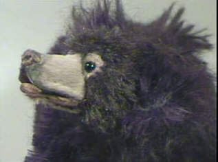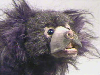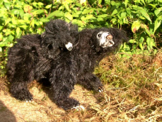Im Winter 2000 machte ich einen 30 cm großen Lippenbären. Die Details sind noch genauer ausgearbeitet, vor allem die langen Krallen und die beweglichen Lippen, mit denen sie die Ameisen aus ihren Löchern saugen.