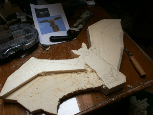 Für die Tierreliefs habe ich Styrodur, eine Dämmplatte, verwendet, auf das ich das jeweilige Tier einfach nach einem Foto gezeichnet habe. |