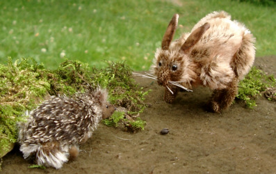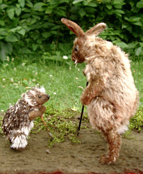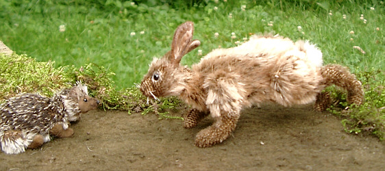 "I am already here!" The hedgehog - or his wife? - is waiting forthe running hare. |