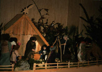 In 1966 I made my first poseable nativity scene. Heads and parts of arms and legs are sculptured from wax or Fimo on a wire sceleton. As you can see with Mary and Joseph the figures can have very different positions. The grown ups are around 10" tall.The pictures above show the nativity of our family which I have started in 1984, when our son Josef was born. It was completed in the next years. Now our children belong to the scene as well as our horses instead of the oxen and the donkey. Diese Wachsfigurenkrippe entstand 1974, die beiden unteren Krippen aus beweglichen Fimo-Figuren habe ich in der Zeit zwischen 1985 und 1990 für verschiedene Familien gemacht. Ausstattung und Aufbau erfolgte von den Besitzern.These are nativities from wax and Fimo I made between 1974 and 1990 for different families. The pictures show how these families decorated their figures in their own way.