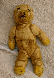Gelenke stillgelegt, die Stimme defekt und die Füllung verklumpt - aber eine gründliche Überholung machte aus Lachmann wieder einen fröhlichen Teddy. |
