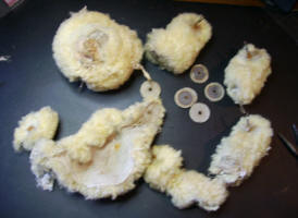 einigen Fehlversuchen einige Lammfellreste passend zu färben und nach dem