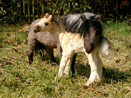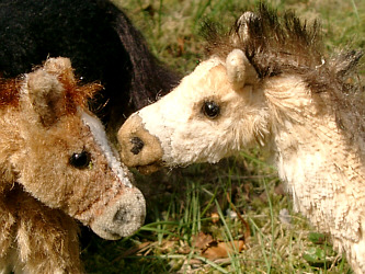 All three mares have a shoulder height of 6". They are made of viscose and are unjointed, but due to their wire skeleton very poseable.