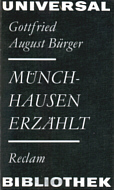 Wunderbare Reisen zu Wasser und Lande, Feldzüge und lustige Abenteuer des Freiherrn von Münchhausen. Wie er dieselben bei der Flasche im Zirkel seiner Freunde selbst zu erzählen pflegt. Leipzig: Reclam - Verlag, 1990 [Reclam-Bibliothek 121] [Verlags-Nr. 660 071 4] 8. (recte 9.) Auflage Taschenbuch; Format 10,7 x 17,7; 99 + 3 Seiten Textkritisch bearbeitet und mit einem Nachwort von Curt Noch Text nach: Wunderbare Reisen zu Wasser und Lande, Feldzüge und lustige Abenteuer des Freyherrn von Münchhausen, wie er dieselben bey der Flasche im Zirkel seiner Freunde selbst zu erzählen pflegt. London (Göttingen) 1786: und nach der zweiten, vermehrten Ausgabe, London (Göttingen) 1788 Mit 16 Illustrationen von Renate Totzke-Israel © Reclam-Verlag Leipzig 1981 Reihengestaltung: Lothar Reher Lizenz Nr.363.340/31/90. LSV 7101. Vbg. 5,6 Printed in the German Democratic Republic Grafischer Großbetrieb Völkerfreundschaft Dresden Gesetzt aus der Garamond-Antiqua ISBN 3-379-00546-0 DDR [SCH 1990/02 |