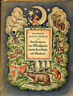 Oldenburg i. 0.: Gerhard Stalling Verlag, 1923 [Der Blumengarten - Volks- und Jugendbücher Band 9 lt.DBL] Halbleinenband; Format 16 x 20,9; 96 Seiten Zuerst gesammelt und englisch herausgegeben von Rudolf Erich Raspe. Übersetzt und hier und da erweitert von Gottfried August Bürger. Neu herausgegeben von Will Vesper Geschmückt mit Federzeichnungen von K. (=Kurt) Gundermann Einbandzeichnung von O. H. W. Hadank Druck von Gerhard Stalling, Oldenburg i. 0. Literatur: Wackermann 1.114.1 Zürich 162 Deutschland [SCH 1923/01] |