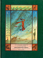 plagdi at siga vinmonnunum tey. Ævintýrini á landi. Tórshavn: Føroya Lærarafelag, 1992 Hochglanzkaschierter Pappband; Format 24,5 x 32,6; 56 Seiten Peter Nicki [i.e. Nickl] hevur skipað fyn tekstúrvali. Upprunaheiti: Die wunderbaren Reisen und Abenteuer des Freiherrn von Münchhausen. Føroyska týðningen er eftir Heðin Brú , úr bokini »Münchhausen greivi - sigur frá« Binette Schroeder teknaði Tillagað og stytt hevur Nies Jákup Thomsen. Eftirmælið hevur Bjørg Matras Jensen týtt ur týskum. Prentgerð: E.O. Prent, Tórshavn. Prentað í Belgia. Färöer [SCH 1992/03] |